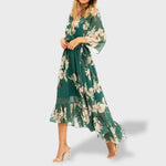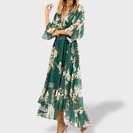 Lana™ | Zelena maxi haljina s printom i 3/4 rukavima